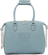 Blue leather 'The Not So Big Apple' tote from Marc Jacobs featuring round top handles, an internal zipped pocket, a front zip pocket and a silver-tone logo stamp.