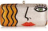 Multicolored Swarovski crystal-embellished gold-tone metal, gold leather (Calf)- Clasp fastening at top - Comes with dust bag and crystal-embellished mini pen