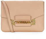 This stylish leather clutch doubles up as a cross body bag with a metallic chain strap. The piece features a zip fastening into the main compartment. , Clutch Bags , Do not wash.